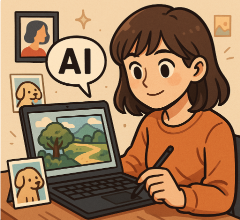 일러스트, 캐릭터, 배경, 로고, 스티커까지—사람이 손으로 일일이 만들지 않아도 AI 툴을 활용해 완성도 높은 이미지 콘텐츠를 생산할 수 있습니다.